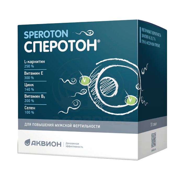 Порошок "Сперотон" предназначен для повышения мужской фертильности (способности к созданию жизнеспособного потомства). Компоненты препарата: стимулируют сперматогенез, повышают концентрацию сперматозоидов в семенной жидкости, увеличивают подвижность сперматозоидов. Примерно 15% пар, планирующих рождение ребенка, сталкиваются с неспособностью зачать его. Причем приблизительно в половине случаев зачатие не происходит из-за снижения репродуктивных возможностей мужчины. Сперотон содержит L-карнитин, витамин Е и цинк в повышенных дозировках. Эти вещества оказывают эффективную помощь мужчинам при трудностях с зачатием. L-карнитин увеличивает количество и подвижность сперматозоидов, стимулирует их созревание, способствует уменьшению количества их атипичных (патологических форм). витамин Е повышает жизнеспособность сперматозоидов, увеличивает их количество и концентрацию, эффективен при астенозоосперсии и олигоастенозооспермии. Цинк необходим для синтеза основного мужского гормона тестостерона и фолликулостимулирующего гормона (ФСГ), которые отвечают за выработку спермы. Сперотон - не гормональный препарат, однако его компоненты помогают нормализовать выработку гормонов, необходимых для успешного осуществления репродуктивной функции мужчины.