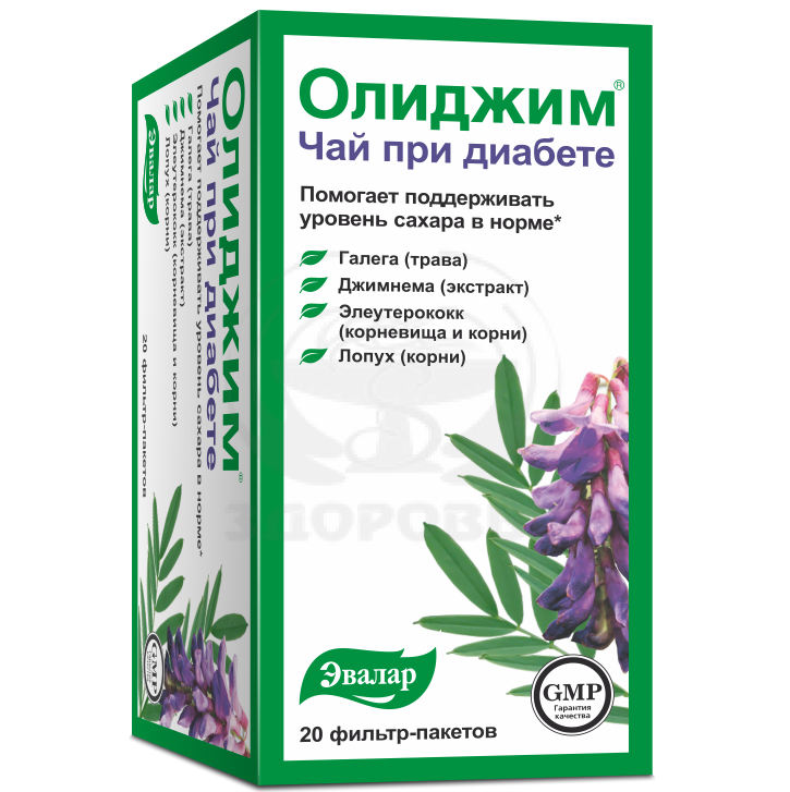 Если вы хотите, чтобы сахар в крови всегда оставался в норме, помогите своему организму при помощи диет, а также в течение дня пейте чай Олиджим – это вкусная альтернатива обычному чаю для тех, кому важно поддерживать нормальный обмен веществ и уровень сахара в крови. В его составе:трава галеги (козлятника лекарственного), которая способствует поддержанию уровня сахара в крови в нормелистья брусники, которые обладают мочегонным действием и ускоряют выведение из организма сахара и нерастворимых солейлистья крапивы, которые поддерживают выработку инсулина в нормеплоды шиповника и цветки гречихи обладают антиоксидантными свойствами, способствуют укреплению и повышению эластичности сосудовлистья смородины содержат широкий спектр витаминов и минералов.