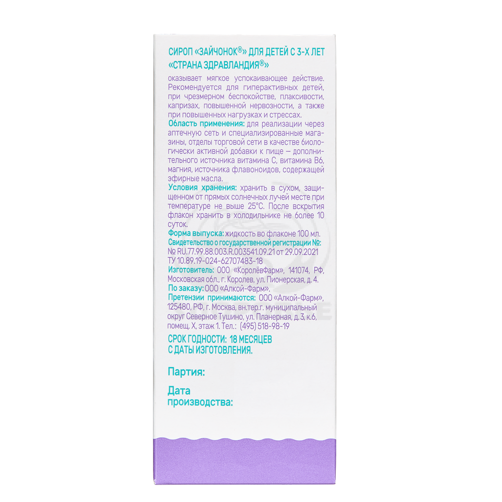Сироп Зайчонок мягко успокаивает, снижает повышенную возбудимость, помогает адаптироваться к детскому саду и школе.