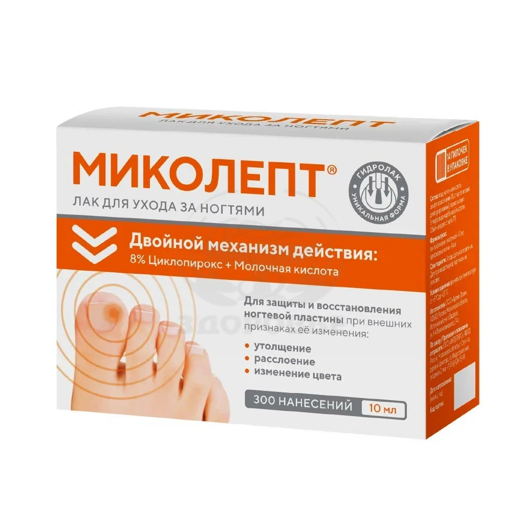 Циклопирокс обладает противогрибковыми и антибактериальными свойствами. Эффективен в отношении основных возбудителей онихомикозов: Trichophyton spp., Microsporum spp., Epidermophyton floccosum, дрожжеподобных грибов (Candida spp., Malassezia furfur, Cryptococcus neoformans, Sacchаromyces cerevisiae), Aspergillus spp., Fusarium spp., а также в отношении грамположительных и большинства грамотрицательных бактерий. Подавляет развитие микоплазм и трихомонад. Циклопирокс повреждает грибковую клетку, нарушая транспорт компонентов, необходимых для жизнедеятельности клеточной стенки гриба.