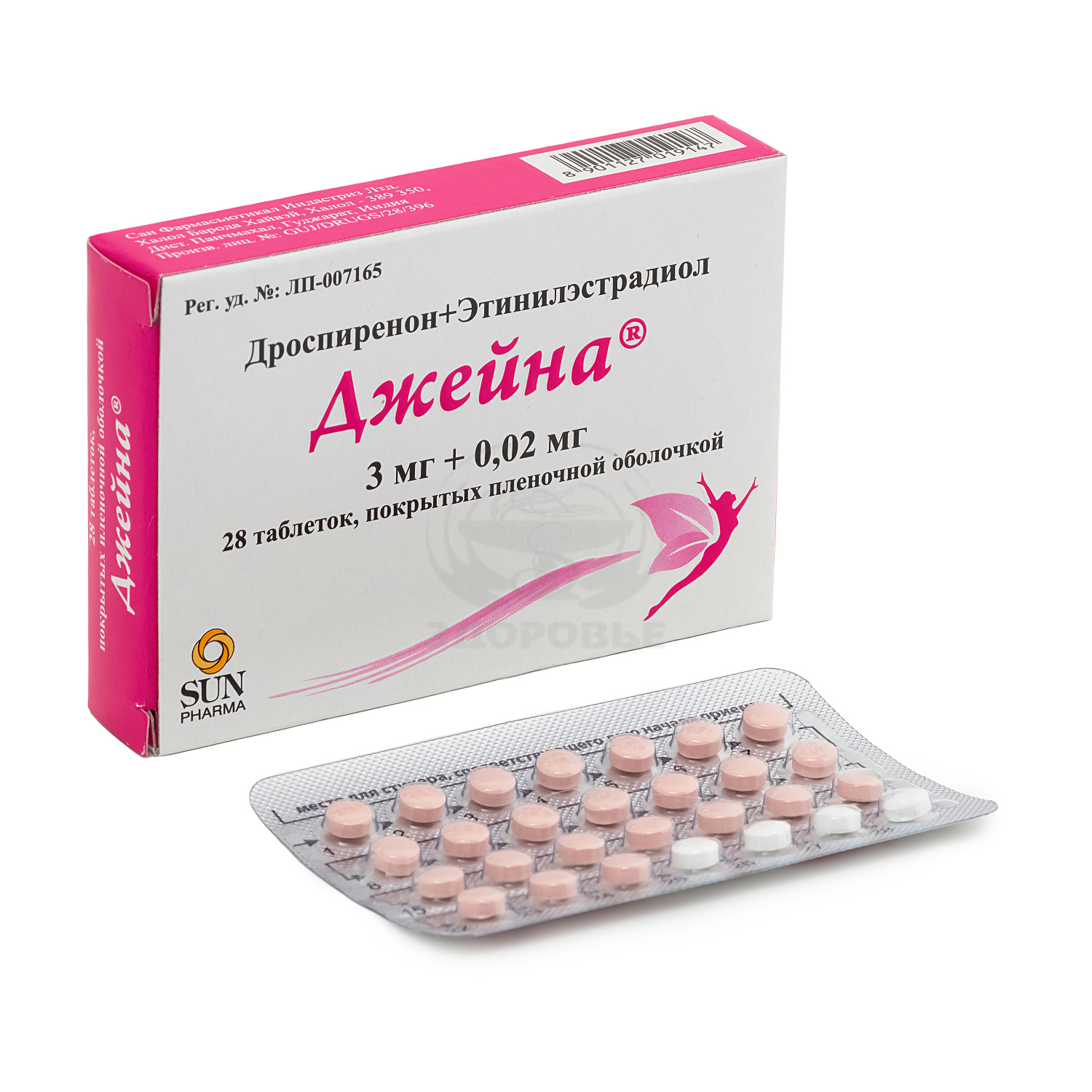 Показания к применению Джейна, таблетки 3 мг +0,02 мг, 28 шт.