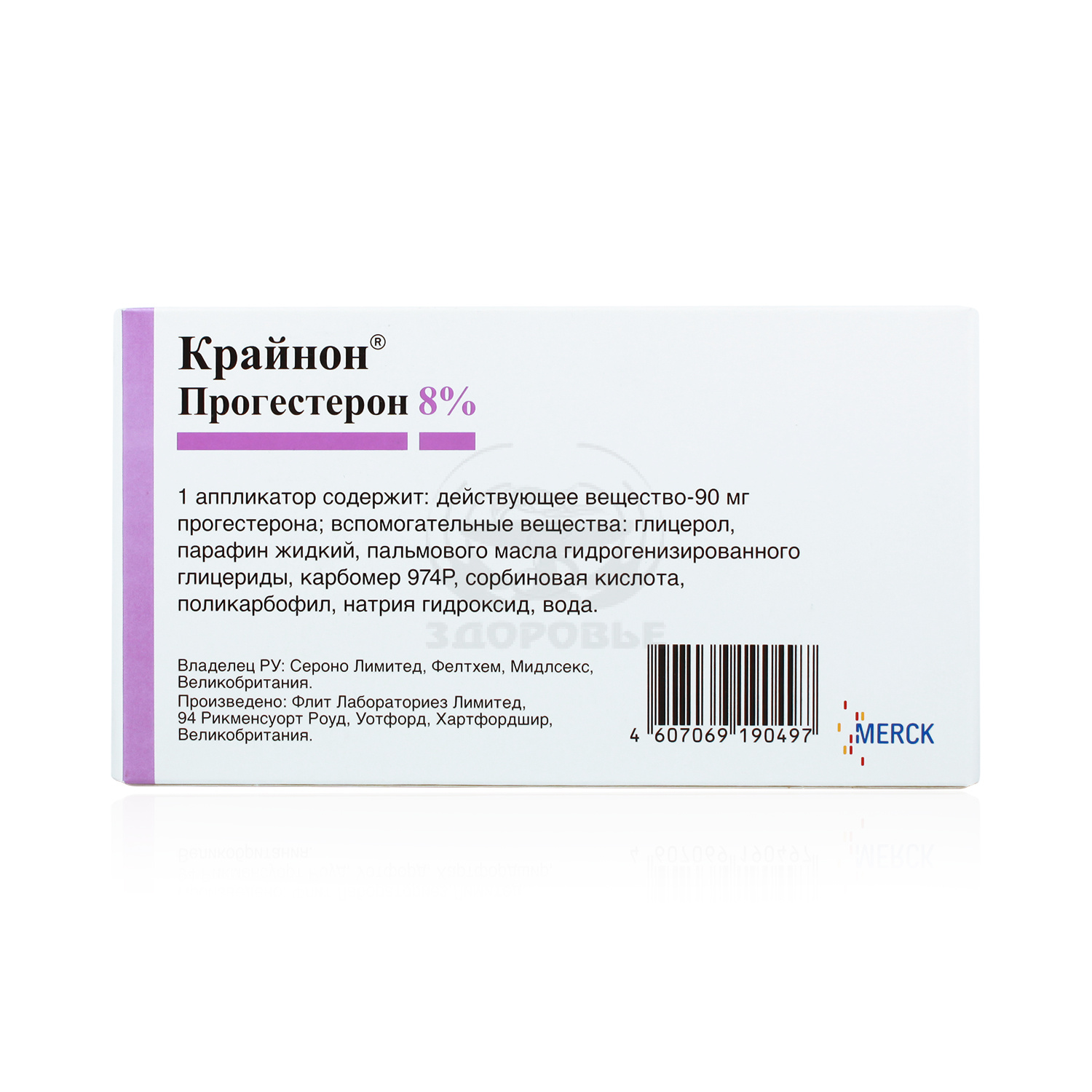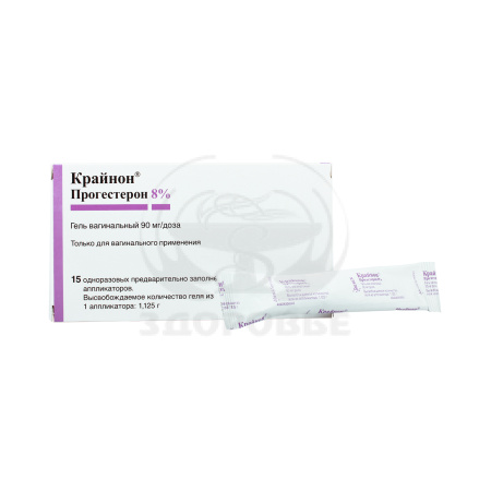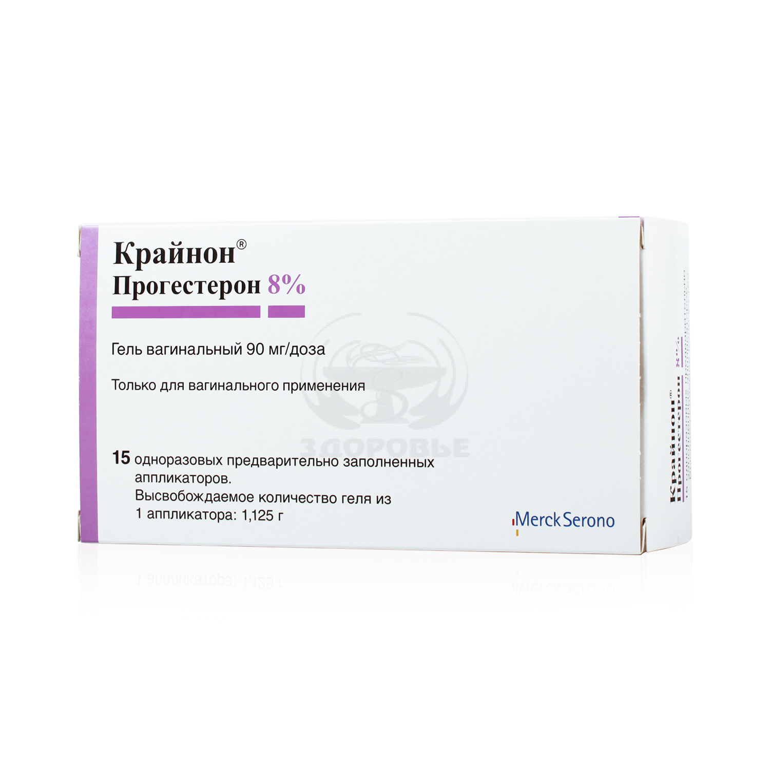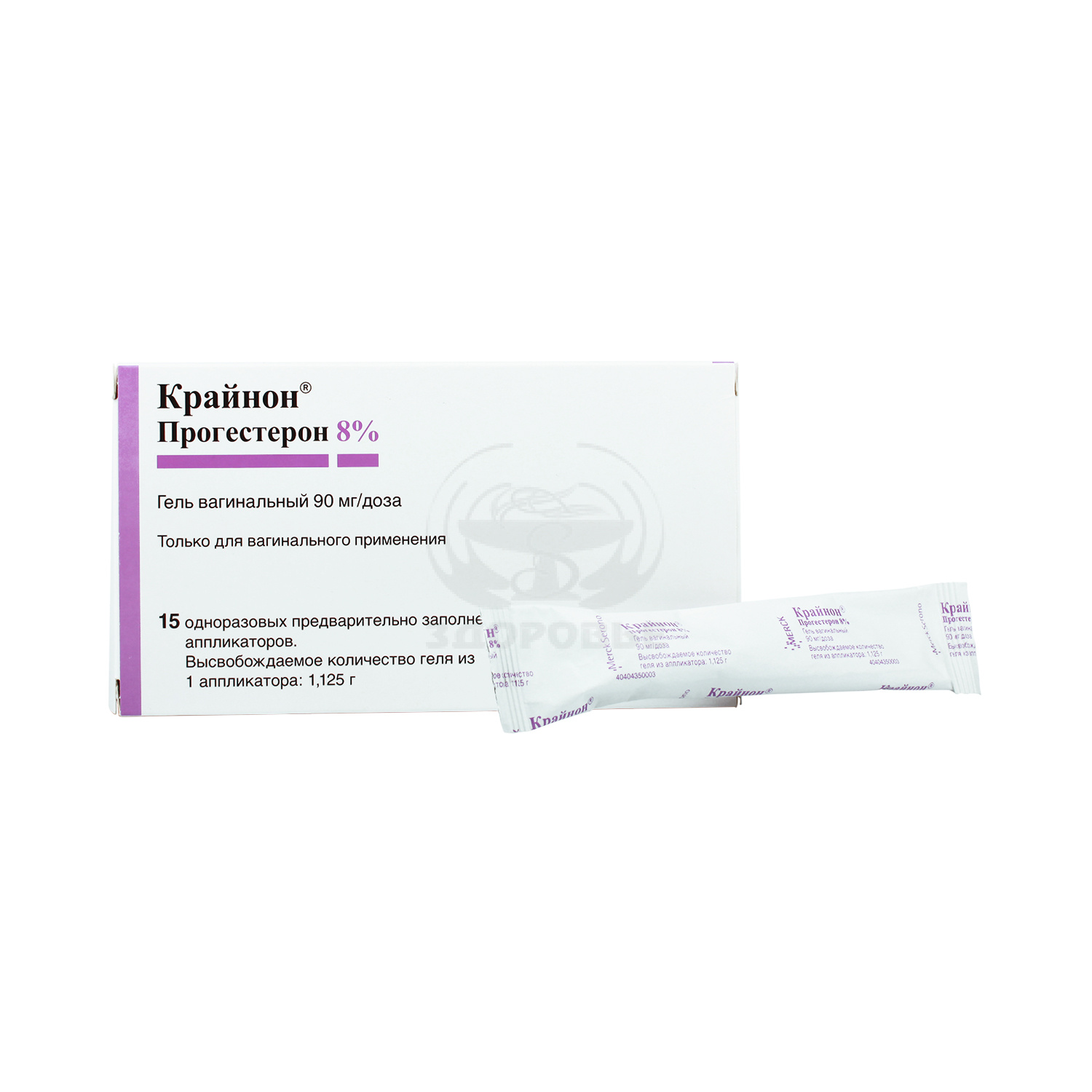Поддержание лютеиновой фазы в процессе применения вспомогательных методов репродукцииНачиная со дня переноса эмбриона, гель применяют в дозе 1.125 г (90 мг прогестерона - 1 аппликатор) и вводят ежедневно интравагинально. При наступлении беременности терапию продолжают до 12 недель или в течение 10-12 недель с момента подтвержденной беременности.Вторичная аменорея, дисфункциональные маточные кровотечения, обусловленные дефицитом прогестерона1.125 г геля (90 мг прогестерона) вводят интравагинально через день с 15 по 25 день цикла. При необходимости доза может быть уменьшена или увеличена.Заместительная гормонотерапия в постменопаузе (в комбинации с эстрогенными препаратами)90 мг (1 аппликатор) вводят 2 раза в неделю.Правила использования препаратаСледует проинформировать пациентку о необходимости точно выполнять рекомендации по применению препарата.Для соблюдения гигиенических условий и удобства применения Крайнон; упакован в одноразовый аппликатор, который после использования следует выбросить.1. Взять аппликатор, плотно зажав его в верхней части между большим и указательным пальцами. Встряхнуть аппликатор подобно медицинскому термометру так, чтобы гель переместился в нижний конец аппликатора.2. Держать аппликатор за верхний плоский конец воздушного контейнера. Удалить с противоположного конца отламывающуюся крышечку путем поворота. Не надавливать на воздушный контейнер.3. Аппликатор может быть введен как в положении сидя, так и в положении лежа со слегка согнутыми коленями. Осторожно ввести нижний конец аппликатора во влагалище.4. Сильно сдавить воздушный контейнер, чтобы гель из аппликатора попал во влагалище. Несмотря на то, что некоторое количество геля остается в аппликаторе, доза введена полностью. Теперь аппликатор с оставшимся гелем можно выбросить. Крайнон; покрывает слизистую оболочку влагалища, обеспечивая длительное высвобождение прогестерона.