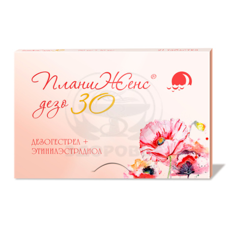 - Препарат ПланиЖенс® дезо 30 представляет собой монофазный низкодозированный КОК, содержащий комбинацию дезогестрела и этинилэстрадиола. Дезогестрел - синтетический прогестаген, обладающий сильной ингибирующей овуляцию активностью. Этинилэстрадиол является хорошо известным синтетическим эстрогеном. При правильном применении индекс Перля (ИП - показатель, отражающий частоту наступления беременности у 100 женщин в течение 1 года применения контрацептива) составляет менее 1: в крупном многоцентровом исследовании эффективности контрацепции комбинацией дезогестрел + этинилэстрадиол (количество циклов - 23258) нескорректированный ИП составил 0,1. При неправильном применении, в том числе при пропуске своевременного приема таблеток, ИП может возрастать. У женщин, принимающих КОК, цикл становится более регулярным, уменьшаются болезненность и интенсивность менструальноподобных кровотечений, в результате чего снижается риск железодефицитной анемии.
