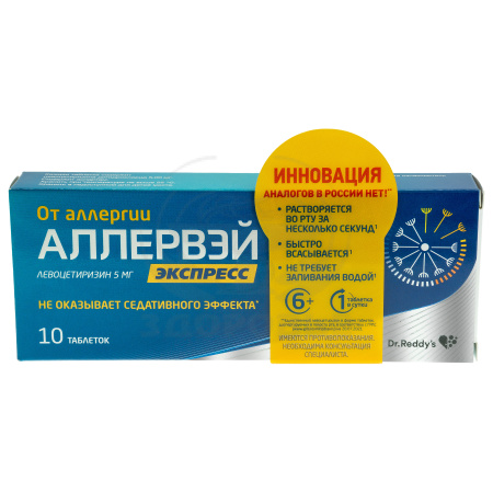 Интервалы между дозами должны быть подобраны индивидуально в зависимости от почечной функции.Рекомендуется соблюдать осторожность при одновременном применении с алкоголем.Препарат содержит аспартам, источник фенилаланина, что может представлять опасность для пациентов с фенилкетонурией.При наличии у пациентов предрасполагающих факторов к задержке мочи (например, повреждение спинного мозга, гиперплазия предстательной железы) следует соблюдать осторожность, поскольку левоцетиризин может увеличивать риск задержки мочи.Осторожность следует соблюдать у пациентов с эпилепсией и повышенной судорожной готовностью, поскольку левоцетиризин может вызвать обострение приступов.Реакция на кожные аллергические пробы подавляется антигистаминными препаратами, и перед проведением тестирования необходимо воздержаться от приема препарата в течение 3 дней.Возможно появление зуда после прекращения приема левоцетиризина, даже если подобных симптомов не было в начале лечения. Симптомы могут пройти самостоятельно.В некоторых случаях симптомы могут быть сильно выраженными, и это может потребовать возобновления лечения.После возобновления лечения эти симптомы должны пройти.ДетиЛевоцетиризин в таблетках, диспергируемых в полости рта, противопоказан у детей до 6 лет, поскольку данная лекарственная форма не позволяет использовать подходящую дозировку для этой возрастной группы. Рекомендуется использовать педиатрическую лекарственную форму (капли для приема внутрь).Влияние на способность управлять транспортными средствами, механизмамиЛевоцетиризин может привести к повышенной сонливости, следовательно, препарат Аллервэй Экспресс может оказывать влияние на способность управлять автомобилем или работать с техникой. В период лечения необходимо воздерживаться от занятий потенциально опасными видами деятельности, требующими повышенной концентрации внимания и быстроты психомоторных реакций.