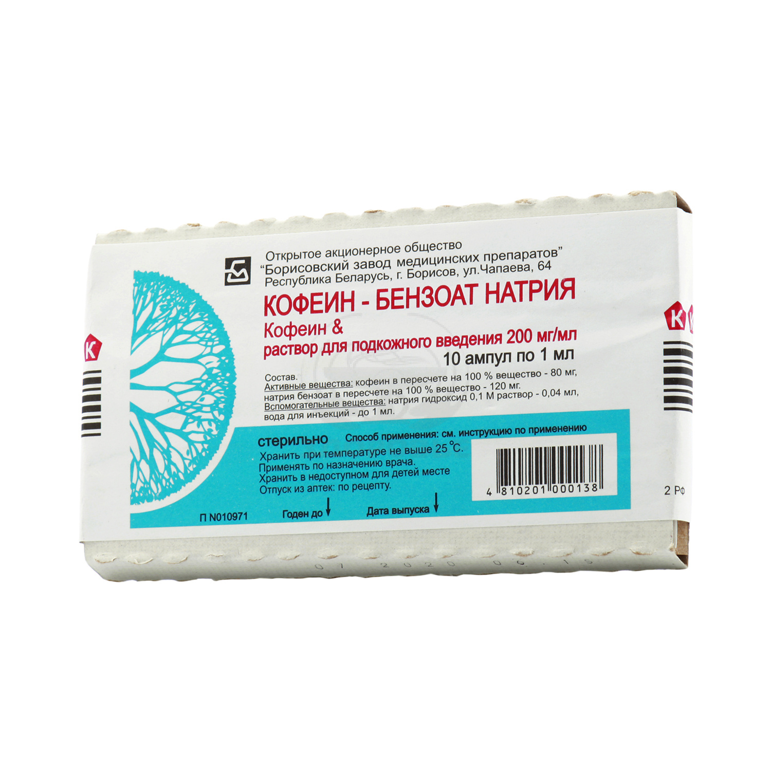 1 мл содержит:Кофеин бензоат натрия 200 - мг.