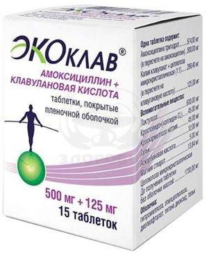 Оба действующих вещества препарата Экоклав®, амоксициллин и клавулановая кислота, быстро и хорошо всасываются при приеме внутрь. Абсорбция действующих веществ препарата Экоклав® оптимальна в случае приема препарата в начале приема пищи. При применении препарата Экоклав® концентрации амоксициллина в плазме сходны с таковыми при пероральном приеме эквивалентных доз амоксициллина.