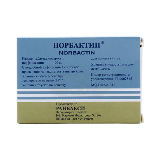 В 1 таблетке содержится: Активное вещество: норфлоксацин 400 мг Вспомогательные вещества: МКЦ, кроскармеллоза натрия, натрия лаурилсульфат, крахмал кукурузный, кремния диоксид коллоидный, магния стеарат, тальк очищенный оболочка: гипромеллоза, макрогол 400, тальк очищенный, титана диоксид, вода очищенная (теряется в процессе производства)