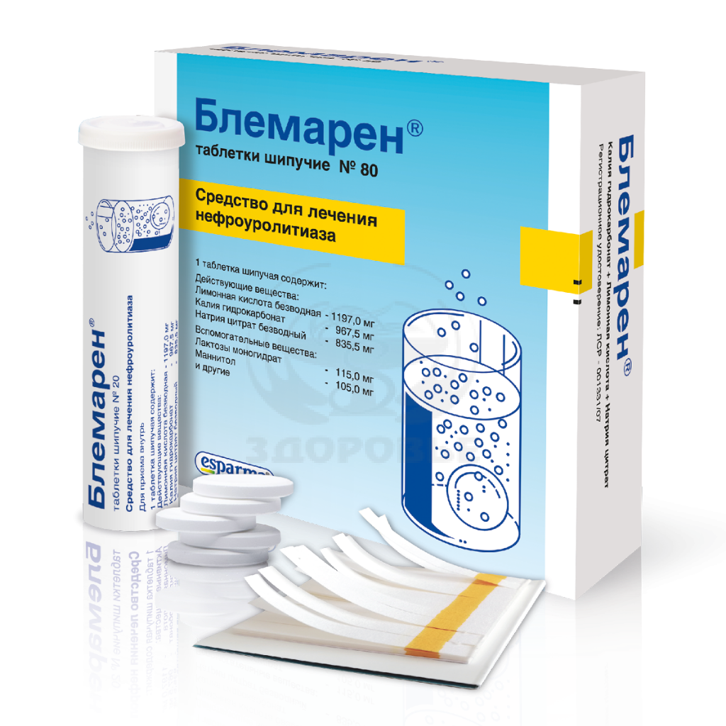Круглые плоскоцилиндрические таблетки белого цвета, с фаской, со слабым запахом лимона. Способ применения и дозы:Перед приемом внутрь таблетки растворяют в 200 мл жидкости (вода, чай, фруктовые соки или щелочная минеральная вода).Суточная доза - 2 - 6 таблеток, равномерно распределяется на 3 равные части и принимается после еды в течение дня. Контроль эффективности препарата осуществляют путем определения pH свежей мочи 3 раза в день перед очередным приемом препарата с помощью индикаторной бумаги, вложенной в каждую пачку.Доза считается правильно подобранной в том случае, если pH в течение суток находится в рекомендованных пределах для каждого показания. Для растворения мочекислых камней pH мочи должен быть в пределах 7,0 - 7,2. Для растворения уратно-оксалатных смешанных камней и предупреждения образования кальций-оксалатных камней pH мочи необходимо поддерживать на уровне 6,8 - 7,4. Для ощелачивания мочи у пациентов с цистиновыми камнями pH мочи должен быть в диапазоне 7,5 - 8,5. Для лечения порфирии pH мочи должен быть в пределах 7,2 - 7,5. При лечении цитостатиками pH мочи должен быть не ниже 7,0. Продолжительность лечения не менее 4-6 мес.При наличии цистиновых камней и лечении порфирии для контроля эффективности следует использовать специальную индикаторную бумагу для определения pH в диапазоне 7,2 - 9,7 (не входит в комплект).