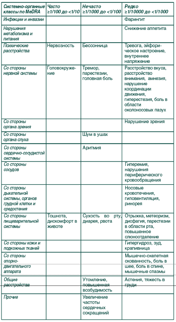 Частота нежелательных лекарственных реакций классифицирована в соответствии с рекомендациями Всемирной Организации Здравоохранения.