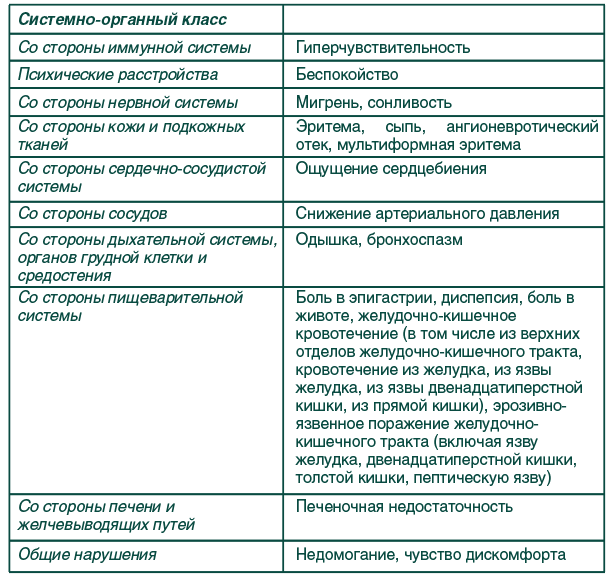 Если у пациента на фоне приема препарата развивается кровотечение или изъязвление ЖКТ, необходимо немедленно его отменить. В любой момент лечения любыми НПВП могут возникать потенциально летальные кровотечения, изъязвления и перфорации ЖКТ как с предвестниками и тяжелыми желудочно-кишечными осложнениями в анамнезе, так и без них. Эти осложнения, как правило, более тяжело проявляются у пожилых пациентов. Алкоголь, глюкокортикостероиды и НПВП могут повышать риск желудочно-кишечных кровотечений (см. раздел «Взаимодействие с другими лекарственными средствами»). Препарат может способствовать развитию бронхоспазма и возникновению обострения бронхиальной астмы (в т.ч. бронхиальная астма, обусловленная непереносимостью анальгетиков) или других реакций гиперчувствительности. К факторам риска относятся бронхиальная астма, сезонный аллергический ринит, полипоз носа, хроническая обструктивная болезнь легких, хронические инфекции дыхательных путей (особенно ассоциированные симптомами, характерными для аллергического ринита). Такие явления также могут возникать у пациентов с аллергическими реакциями (например, кожными, включая зуд и крапивницу) на другие вещества. У таких пациентов рекомендуется соблюдать особую осторожность.