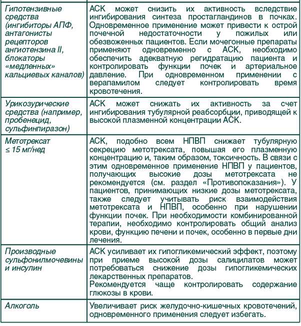Высокие дозы АСК могут искажать результаты ряда клинико-биохимических лабораторных исследований.