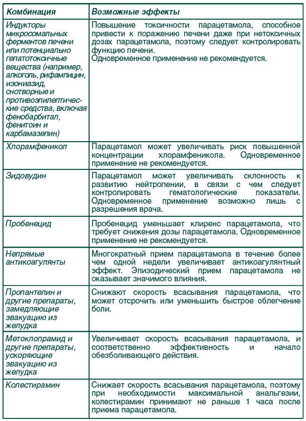 Риск отравления парацетамолом повышается у пациентов, принимающих другие потенциально гепатотоксичные лекарственные препараты или лекарственные препараты, индуцирующие микросомальные ферменты печени (например, рифампицин, изониазид, хлорамфеникол, снотворные и противосудорожные средства, включая фенобарбитал, фенитоин и карбамазепин). Пациенты с алкоголизмом в анамнезе входят в особую группу риска по поражению печени (см. раздел «Взаимодействие с другими лекарственными средствами»).