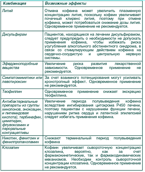 При применении препарата следует ограничить потребление продуктов, содержащих кофеин, поскольку избыточное поступление кофеина может привести к нервозности, раздражительности, бессоннице и, в некоторых случаях, учащению сердцебиения.