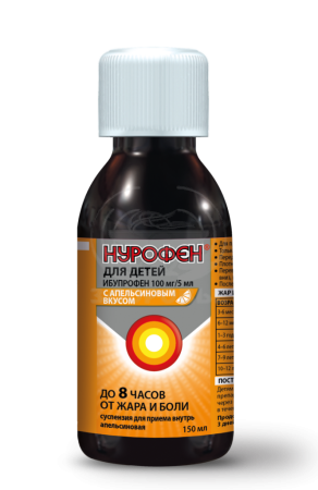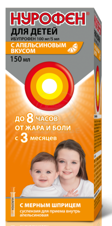 Нурофен для детей - препарат специально разработанный для детей. Внимательно прочтите инструкцию перед применением препарата. Препарат принимают внутрь. Перед употреблением тщательно взболтать флакон. Для точного отмеривания дозы препарата прилагается удобный мерный шприц. 5 мл препарата содержат 100 мг ибупрофена.