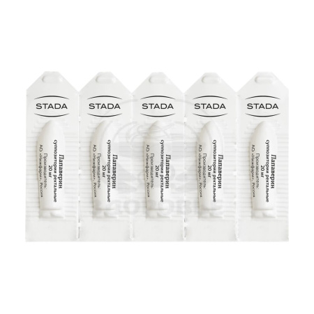 Действующее вещество: ПапаверинВспомогательные вещества: эмульгатор No1;стеарин косметический;твердый жир.Концентрация действующего вещества (мг): 20 мг