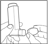 Перед первым использованием ингалятора или если ингалятором не пользовались неделю и дольше проверьте его работу. Для этого снимите защитный колпачок с мундштука ингалятора, хорошо встряхните ингалятор и нажмите на баллон, выпуская одну струю препарата в воздух.