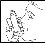 Шаг 5. Выполните максимально глубокий вдох, одновременно быстро нажмите на дно баллона до высвобождения одной ингаляционной дозы.