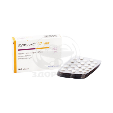 Суточная доза определяется индивидуально в зависимости от показаний. Эутирокс в суточной дозе принимают внутрь утром натощак, по крайней мере, за 30 мин до приема пищи, запивая таблетку небольшим количеством жидкости (половина стакана воды) и не разжевывая. При проведении заместительной терапии при гипотиреозе у пациентов в возрасте до 55 лет при отсутствии сердечно-сосудистых заболеваний Эутирокс назначают в суточной дозе 1.6-1.8 мкг/кг массы тела; у пациентов в возрасте старше 55 лет или при сопутствующих сердечно-сосудистых заболеваниях - 0.9 мкг/кг массы тела. При заместительной терапии при гипотиреозе начальная доза для пациентов в возрасте до 55 лет (при отсутствии сердечно-сосудистых заболеваний) составляет для женщин 75-100 мкг/сут, для мужчин - 100-150 мкг/сут. Для пациентов старше 55 лет или при сопутствующих сердечно-сосудистых заболеваниях начальная доза составляет 25 мкг/сут; увеличивать дозу следует на 25 мкг с интервалом 2 мес до нормализации уровня ТТГ в крови; при появлении или ухудшении симптомов со стороны сердечно-сосудистой системы необходимо провести коррекцию терапии сердечно-сосудистых заболеваний. При тяжелом длительно существующем гипотиреозе лечение следует начинать с особой осторожностью с малых доз - 12.5 мкг/сут. Дозу увеличивают до поддерживающей через более продолжительные интервалы времени - на 12.5 мкг/сут каждые 2 недели - и чаще определяют уровень ТТГ в крови. При лечении врожденного гипотиреоза у детей дозы препарата зависят от возраста. Возраст Суточная доза левотироксина (мкг) Доза левотироксина в расчете на массу тела (мкг/кг) 0-6 мес 25-50 10-15 6-12 мес 50-75 6-8 1-5 лет 75-100 5-6 6-12 лет 100-150 4-5 старше 12 лет 100-200 2-3 Грудным детям и детям до 3 лет суточную дозу препарата Эутирокс дают в 1 прием за 30 мин до первого кормления. Таблетку растворяют в воде до тонкой взвеси непосредственно перед приемом препарата. При лечении эутиреоидного зоба назначают 75-200 мкг/сут. Для профилактики рецидива после хирургического лечения эутиреоидного зоба - 75-200 мкг/сут. В комплексной терапии тиреотоксикоза - 50-100 мкг/сут. Для супрессивной терапии рака щитовидной железы - 150-300 мкг/сут. При проведении теста тиреоидной супрессии используют следующую схему дозирования препарата: Дозы препарата Эутирокс за 4 недели до теста за 3 недели до теста за 2 недели до теста за 1 неделю до теста 75 мкг/сут 75 мкг/сут 150-200 мкг/сут 150-200 мкг/сут При гипотиреозе Эутирокс принимают, как правило, в течение всей жизни. При тиреотоксикозе Эутирокс используют в комплексной терапии с тиреостатиками после достижения эутиреоидного состояния. Во всех случаях длительность лечения препаратом определяется индивидуально.