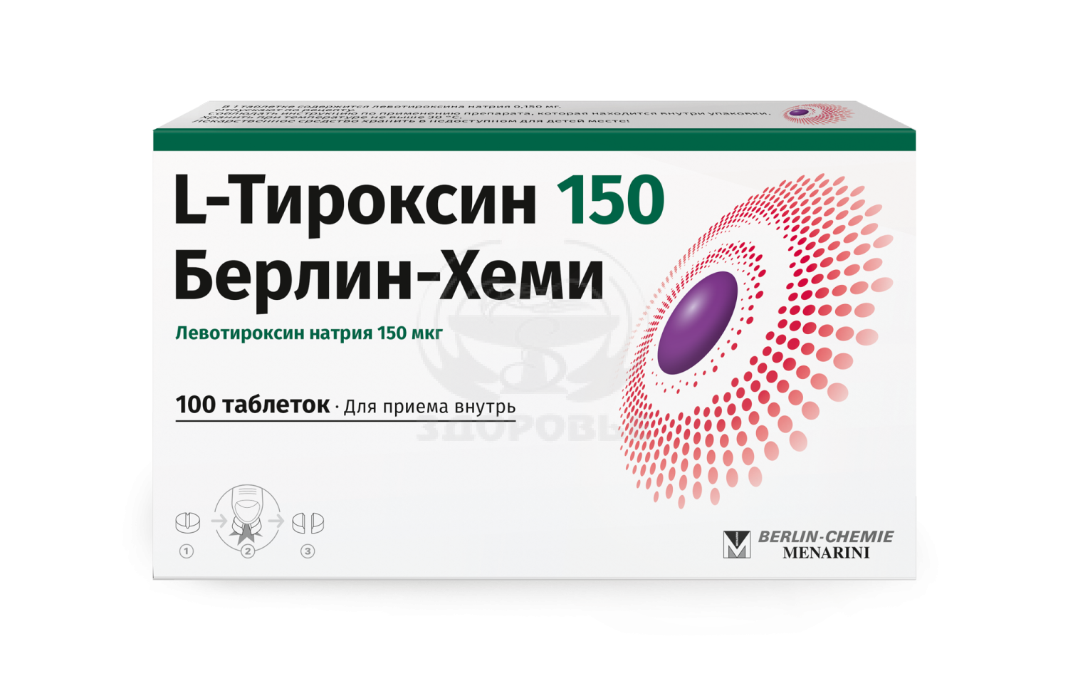 Суточная доза определяется индивидуально в зависимости от показаний.;L-Тироксин Берлин-Хеми в суточной дозе принимают внутрь утром натощак, по крайней мере, за 30 мин до приема пищи, запивая таблетку небольшим количеством жидкости (полстакана воды) и не разжевывая.;При проведении заместительной терапии гипотиреоза пациентам моложе 55 лет при отсутствии сердечно-сосудистых заболеваний L-Тироксин Берлин-Хеми назначают в суточной дозе 1.6-1.8 мкг/кг массы тела; пациентам старше 55 лет или с сердечно-сосудистыми заболеваниями - 0.9 мкг/кг массы тела. При значительном ожирении расчет следует делать на "идеальную массу тела".;Для точного дозирования препарата следует использовать наиболее подходящую дозировку препарата L-Тироксин Берлин-Хеми (50, 75, 100, 125 или 150 мкг).;При тяжелом длительно существующем гипотиреозе лечение следует начинать с особой осторожностью, с малых доз - с 25 мкг/сут, дозу увеличивают до поддерживающей через более продолжительные интервалы времени - на 25 мкг/сут каждые 2 недели и чаще определяют уровень ТТГ в крови. При гипотиреозе L-Тироксин Берлин-Хеми принимают, как правило, в течение всей жизни.;При тиреотоксикозе L-Тироксин Берлин-Хеми применяют в комплексной терапии с тиреостатиками после достижения эутиреоидного состояния. Во всех случаях длительность лечения препаратом определяет врач.;Грудным детям и детям до 3 лет суточную дозу препарата L-Тироксин Берлин-Хеми дают в один прием за 30 мин до первого кормления. Таблетку растворяют в воде до тонкой взвеси, которую готовят непосредственно перед приемом препарата.