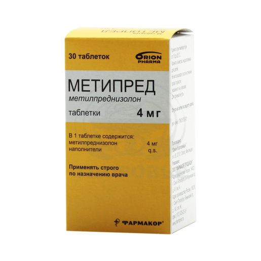 Действующее вещество: Метилпреднизолон (Methylprednisolone)Концентрация действующего вещества (мг): 4