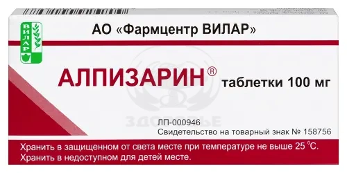 В случае распространенных высыпаний, а также при наличии лихорадки, лимфоаденопатии и других общих явлениях применяют препарат Алпизарин таблетки 100 мг в комплексе с препаратом Алпизарин мазь для наружного и местного применения 2 % и 5 %.; 1 таблетка препарата содержит 0,1 г сахара молочного (лактозы) и 0,0475 г крахмала картофельного, что соответствует 0,01 ХЕ (хлебных единиц). Максимальная суточная доза препарата для детей от 3-х до 12-ти лет содержит 0,03 ХЕ; для детей старше 12-ти лет и взрослых - 0,08 ХЕ.; Влияние на способность к вождению автотранспорта и управлению механизмами;Препарат не оказывает влияния на выполнение потенциально опасных видов деятельности или требующих повышенной концентрации внимания и быстроты психомоторных реакций (управление транспортом и работа с движущимися механизмами).