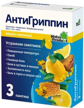 1 пак. парацетамол 500 мг хлорфенамина малеат 10 мг аскорбиновая кислота 200 мг