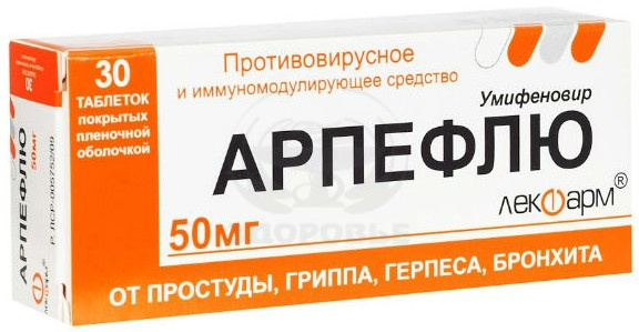 Активное вещество: Метилфенилтиометил-диметиламинометил-гидроксиброминдол карбоновой кислоты этилового эфира гидрохлорида моногидрат (в пересчете на безводное вещество) - 50 мг;