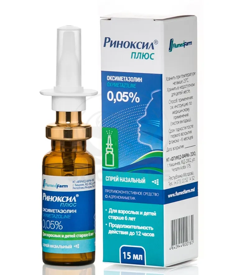 Препарат Риноксил® плюс спрей назальный действует с 25 секунды. Продолжительность действия препарата до 12 часов.