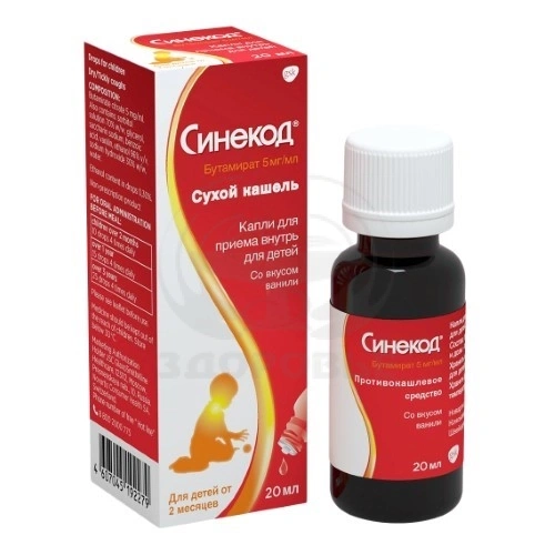 Сироп и капли для приема внутрь содержат в качестве подсластителей сахаринат и сорбитол, поэтому препарат можно назначать пациентам с сахарным диабетом.Препарат содержит небольшое количество этанола: сироп - 11.73 мг/5 мл, капли для приема внутрь - 2.81 мг/мл. Поэтому препарат следует с осторожностью применять у пациентов со склонностью к развитию лекарственной зависимости, с заболеваниями печени, алкоголизмом, эпилепсией, заболеваниями головного мозга, у беременных (II и III триместры) и у детей.Это следует учитывать при необходимости применения.Влияние на способность к вождению автотранспорта и управлению механизмамиСинекод может вызывать сонливость, поэтому следует проявлять осторожность при управлении автотранспортом и при выполнении работы, требующей концентрации внимания (например, при работе с механизмами) после приема препарата.