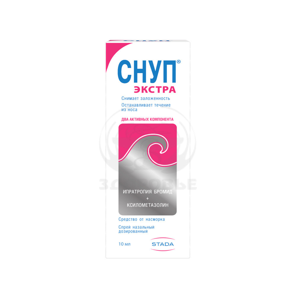 Интраназально. Одно вспрыскивание препарата Снуп® Экстра содержит около 70 мкг ксилометазолина гидрохлорида и 84 мкг ипратропия бромида.