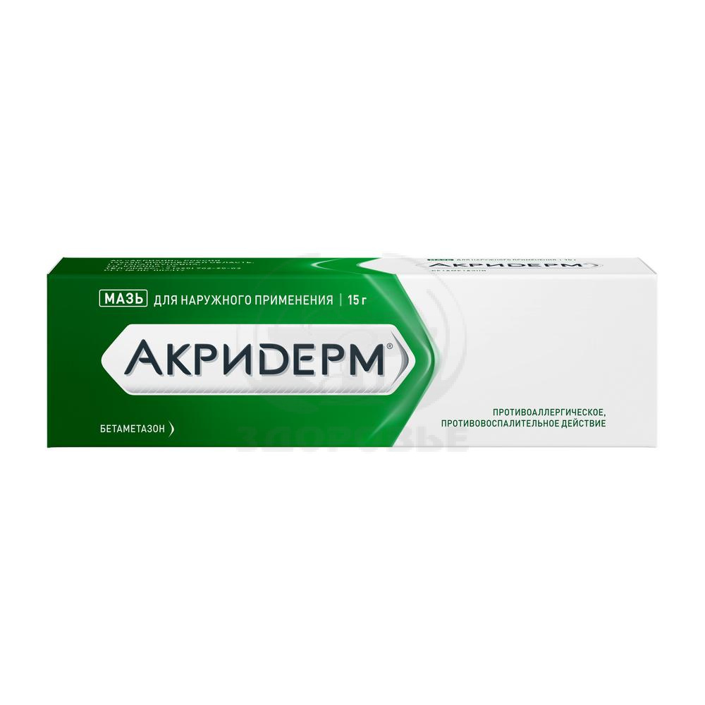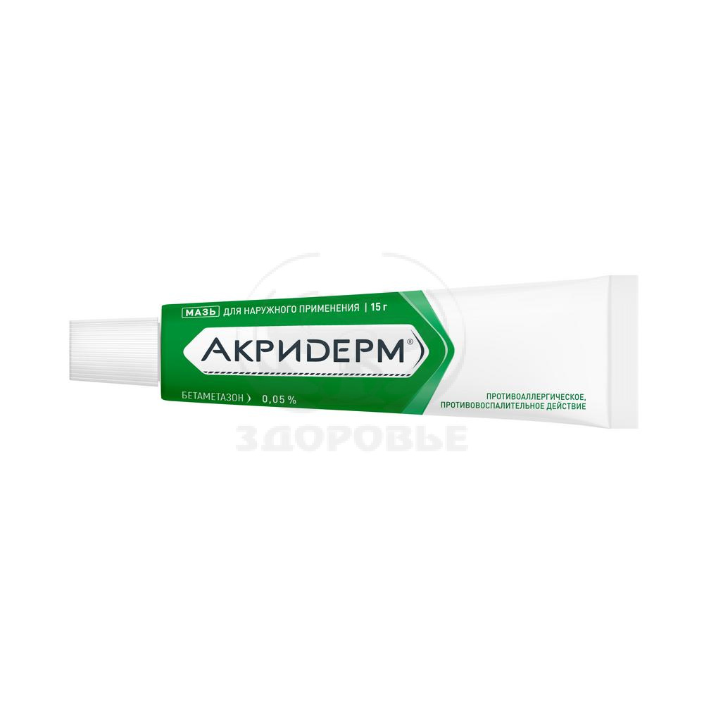 При отсутствии эффекта от лечения в течение двух недель рекомендуется обратиться к лечащему врачу с целью возможного уточнения диагноза. Если при применении препарата отмечено раздражение или реакция повышенной чувствительности, лечение следует прекратить и обратиться к лечащему врачу. При вторичной грибковой или бактериальной инфекции необходима применять соответствующие лекарственные средства. В случае отсутствия, при этом, быстрого положительного эффекта, применение Акридерма должно быть прекращено до тех пор, пока не будут ликвидированы все признаки инфекции.Не рекомендуется длительное применение препарата на коже лица. Не следует использовать Акридерм в области глаз, т.к. в этом случае возможно развитие катаракты, глаукомы, грибковой инфекции и обострение герпетической инфекции.Использование в педиатрииДети могут быть более восприимчивы к применению местных ГКС, вызывающих угнетение гипоталамо-гипофизарно-надпочечниковой системы (ГГН), чем пациенты старшего возраста, в связи с повышенной абсорбцией препарата, связанной с большей величиной соотношения у них площади поверхности и массы тела. У детей, принимавших местные ГКС, отмечались следующие побочные эффекты: подавление функции ГГН системы, синдром Кушинга, линейная задержка роста, отставание в прибавке веса, повышение внутричерепного давления. Симптомы угнетения функции коры надпочечников у детей включают в себя снижение уровня кортязола в плазме и отсутствие ответа на стимуляцию АКТГ. Повышение внутричерепного давления проявляется выбуханием родничка, головной болью, двухсторонним отеком диска зрительного нерва.