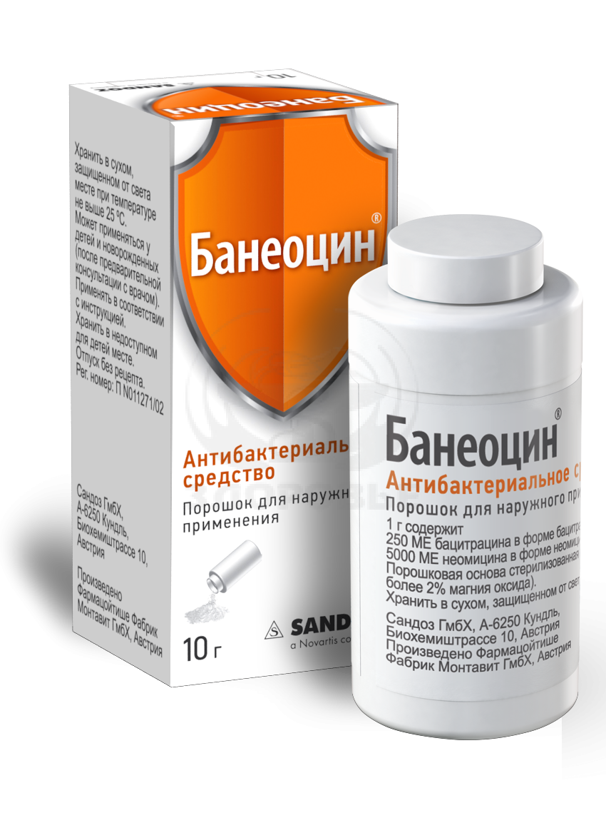 Поскольку риск токсических эффектов возрастает при снижении функции печени и/или почек, у пациентов с печеночной и/или почечной недостаточностью следует проводить анализы крови и мочи вместе с аудиометрическим исследованием до и во время терапии препаратом Банеоцин;.При возможной абсорбции активных компонентов препарата Банеоцин; необходимо следить за возможным появлением признаков нейромышечной блокады, особенно у пациентов с ацидозом, миастенией (myasthenia gravis) или другими нейромышечными заболеваниями. При развитии нейромышечной блокады показаны препараты кальция или неостигмин.При длительном применении препарата необходимо следить за возможным чрезмерным ростом резистентных микроорганизмов. При необходимости следует назначить соответствующее лечение.В случае применения препарата у детей, пациентов с нарушенной функцией печени и почек, а также при большой площади обрабатываемой поверхности, длительном применении и глубоких поражениях кожи следует предварительно проконсультироваться с врачом.При развитии аллергических реакций и суперинфекции препарат следует отменить.Влияние на способность к вождению автотранспорта и управлению механизмамиНе требуется специальных мер предосторожности.