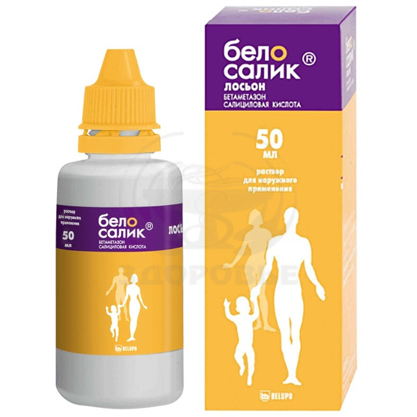 Белосалик® лосьон – комбинированный препарат, действие которого обусловлено входящими в его состав действующими веществами. Бетаметазона дипропионат – синтетический фторированный глюкокортикостероид (ГКС) – оказывает противовоспалительное, противозудное и сосудосуживающее действие. Салициловая кислота при нанесении на кожу обладает кератолитическим действием, а также бактериостатическим и некоторым фунгицидным действием.