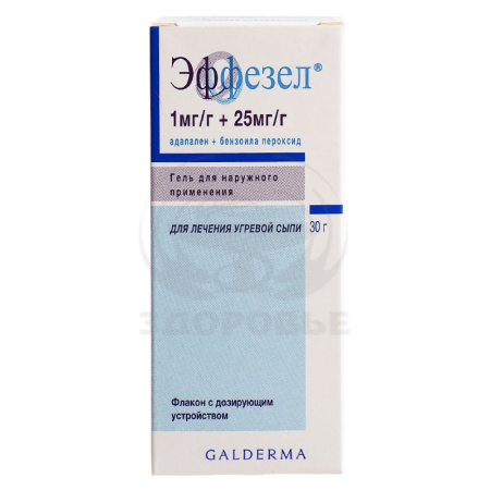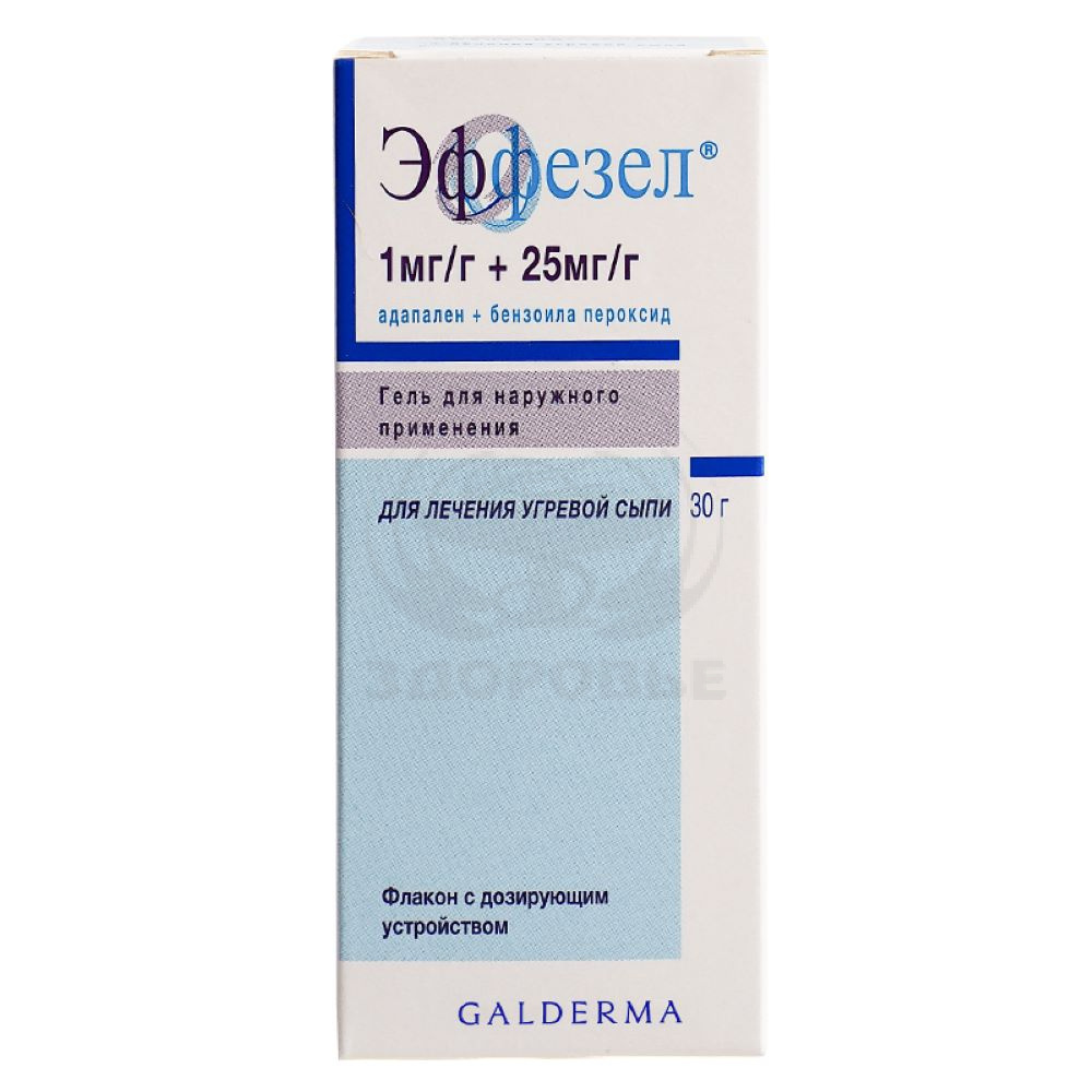Беременность Исследования на животных, в которых адапален принимался внутрь в высоких дозах, показали токсическое действие на репродуктивную систему. Клинический опыт наружного применения комбинации адапалена и бензоила пероксида при беременности носит ограниченный характер, о днако немногоимеющихся данных, собранных у пациенток, получавших препарат на ранних сроках беременности, не свидетельствуют о каком-либо его отрицательном влиянии. В связи с ограниченным характером имеющихся данных, а также вследствие возможности незначительного проникновения адапалена через кожу, Эффезел не следует применять во время беременности. В случае наступления беременности лечение следует прекратить. Период грудного вскармливания Исследований проникновения препарата в молоко животных или человека после накожного нанесения геля Эффезел не проводилось. Поскольку системная экспозиция комбинации адапалена и бензоила пероксида у кормящих грудью женщин незначительна, никакого влияния на находящихся на грудном вскармливании младенцев не ожидается. Эффезел может применятся во время кормления грудью. Следует избегать контакта грудного ребенка с препаратом, нанесения препарата на грудь при использовании в период грудного вскармливания.