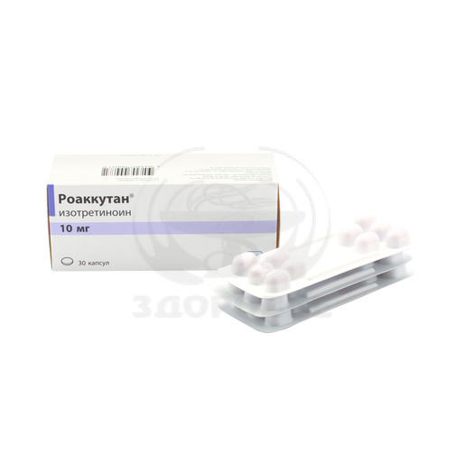 Ретиноид для системной терапии угревой болезни.Изотретиноин - стереоизомер полностью транс-ретиноевой кислоты (третиноина).Точный механизм действия Роаккутана еще не выяснен, однако установлено, что улучшение клинической картины тяжелых форм акне связано с подавлением активности сальных желез и гистологически подтвержденным уменьшением их размеров. Кроме того, доказано противовоспалительное действие изотретиноина на кожу.Гиперкератоз клеток эпителия волосяной луковицы и сальной железы приводит к слущиванию корнеоцитов в проток железы и к закупорке последнего кератином и избытком сального секрета. За этим следует образование комедона и, в ряде случаев, присоединение воспалительного процесса. Роаккутан подавляет пролиферацию себоцитов и действует на акне, восстанавливая нормальный процесс дифференцировки клеток. Кожное сало – основной субстрат для роста Propionibacterium acnes, поэтому уменьшение образования кожного сала подавляет бактериальную колонизацию протока.