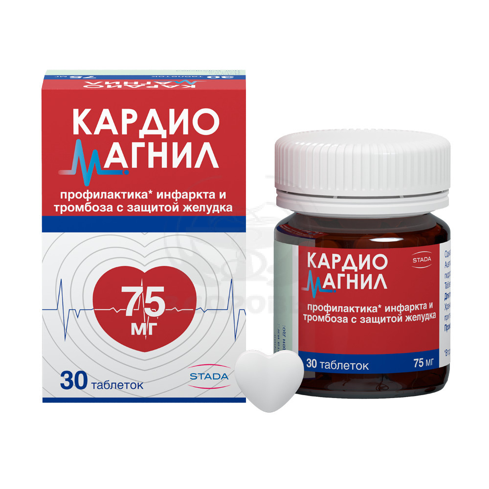 Принимать препарат Кардиомагнил следует после назначения врача.Ацетилсалициловая кислота может провоцировать бронхоспазм, а также вызывать приступы бронхиальной астмы и другие реакции повышенной чувствительности. Факторами риска являются наличие бронхиальной астмы в анамнезе, сенной лихорадки, полипоза носа, хронических заболеваний дыхательной системы, а также аллергических реакций (например, кожные реакции, зуд, крапивница) на другие препараты.Ацетилсалициловая кислота может вызвать кровотечения различной степени выраженности во время и после хирургических вмешательств.За несколько дней до планируемого хирургического вмешательства следует оценить риск развития кровотечения по сравнению с риском развития ишемических осложнений у пациентов, принимающих низкие дозы ацетилсалициловой кислоты. Если риск развития кровотечения значительный, прием ацетилсалициловой кислоты должен быть временно прекращен.Сочетание ацетилсалициловой кислоты с антикоагулянтами, тромболитиками и антитромбоцитарными препаратами сопровождается повышенным риском развития кровотечений.Прием ацетилсалициловой кислоты в низких дозах может спровоцировать развитие подагры у предрасположенных лиц (имеющих сниженную экскрецию мочевой кислоты).Сочетание ацетилсалициловой кислоты с метотрексатом сопровождается повышенной частотой развития побочных эффектов со стороны органов кроветворения.Прием ацетилсалициловой кислоты в высоких дозах оказывает гипогликемический эффект, что необходимо иметь в виду при назначении ее пациентам с сахарным диабетом, получающим гипогликемические средства для приема внутрь и инсулин.При сочетанном применении системных ГКС и салицилатов следует помнить, что во время лечения концентрация салицилатов в крови снижена, а после отмены системных ГКС возможна передозировка салицилатов.Не рекомендуется сочетание ацетилсалициловой кислоты с ибупрофеном у пациентов с повышенным риском сердечно-сосудистых заболеваний: при одновременном применении с ибупрофеном отмечается уменьшение антиагрегантного действия ацетилсалициловой кислоты в дозах до 300 мг, что приводит к снижению кардиопротекторных эффектов ацетилсалициловой кислоты.Превышение дозы ацетилсалициловой кислоты более рекомендуемых терапевтических доз сопряжено с риском желудочно-кишечного кровотечения.При длительном применении ацетилсалициловой кислоты в низких дозах в качестве антиагрегантной терапии необходима осторожность у пациентов пожилого возраста в связи с риском развития желудочно-кишечного кровотечения.При одновременном приеме ацетилсалициловой кислоты с этанолом повышен риск повреждения слизистой оболочки ЖКТ и удлинения времени кровотечения.Влияние на способность к вождению автотранспорта и управлению механизмамиВ период лечения препаратами ацетилсалициловой кислоты пациенты должны соблюдать осторожность при управлении транспортными средствами и занятиях потенциально опасными видами деятельность, требующими повышенной концентрации внимания и быстроты психомоторных реакций.