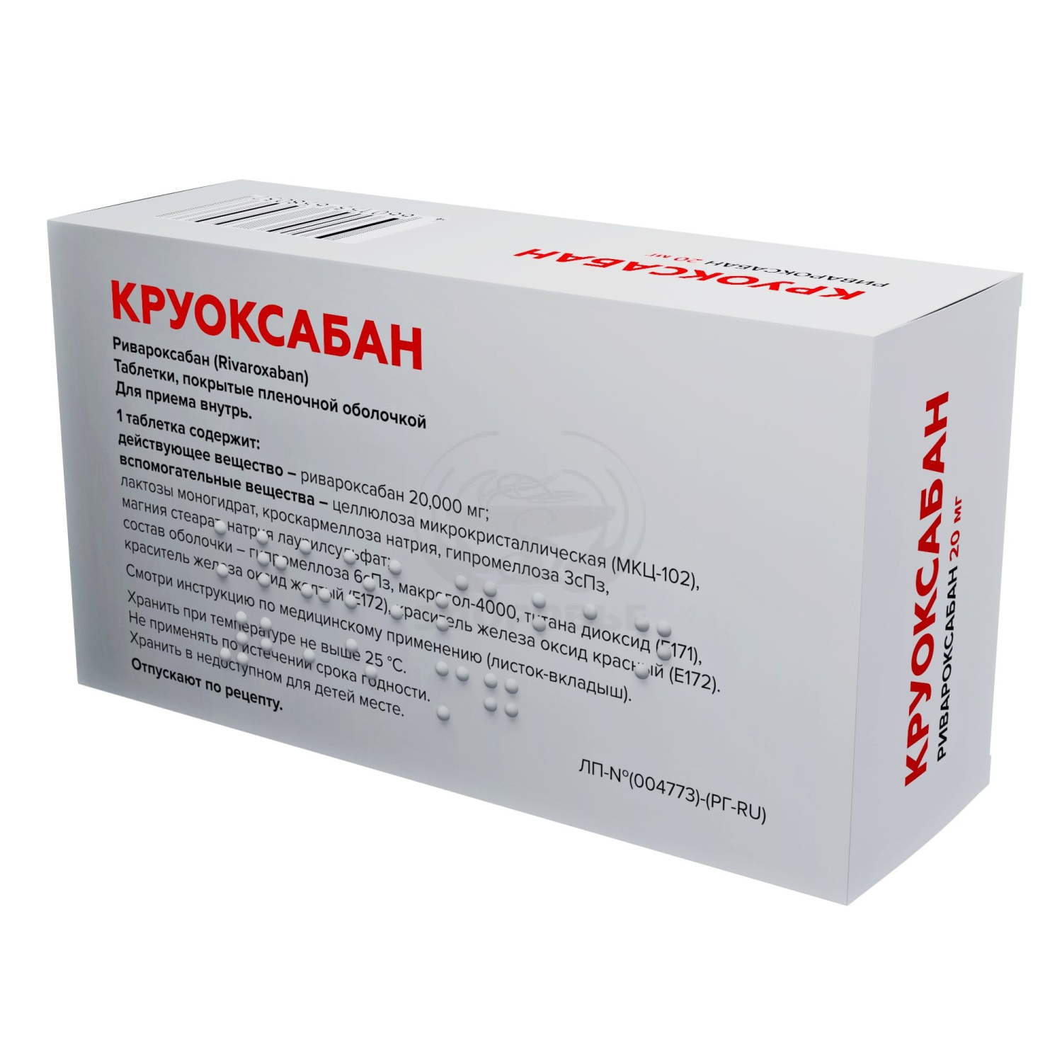 Каждая таблетка содержит 20 мг ривароксабана.