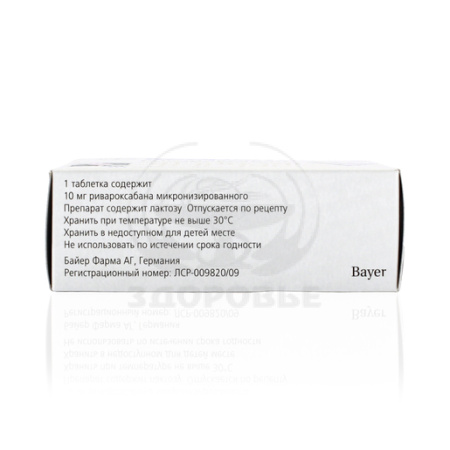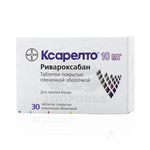 Действующее вещество: Ривароксабан (Rivaroxaban)Концентрация действующего вещества (мг): 10