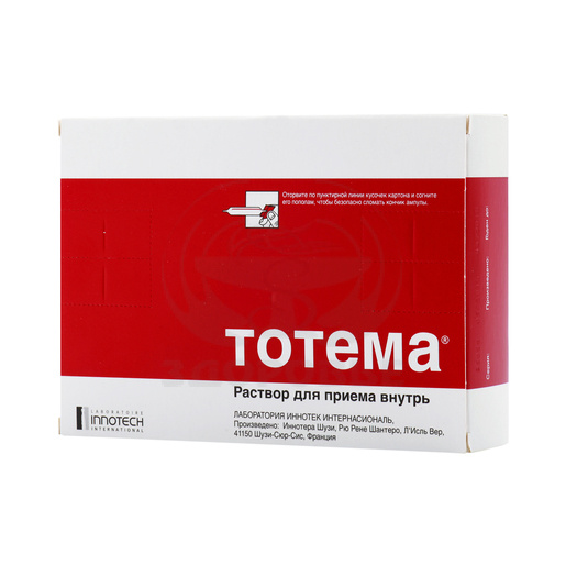 Одновременное применение препарата Тотема приводит к снижению всасывания бисфосфонатов, ципрофлоксацина, тетрациклинов при приеме внутрь.Соли, окиды и гидроксиды магния, алюминия и кальция нарушают всасывание солей железа. Следует принимать Тотема не ранее, чем через 2 ч после приема указанных препаратов.Нельзя сочетать препарат с другими препаратами железа, в т.ч. вводимыми парентерально.