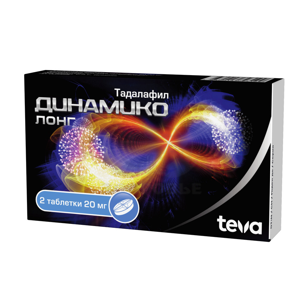 После приёма внутрь тадалафил быстро всасывается. Средняя максимальная концентрация (Сmах) в плазме крови достигается в среднем через 2 часа после приёма внутрь. Скорость и степень всасывания тадалафила не зависят от времени приёма пищи, поэтому препарат ДИНАМИКО ЛОНГ можно применять вне зависимости от приёма пищи. Время приёма (утром или вечером) не оказывало клинически значимого влияния на скорость и степень всасывания. Фармакокинетика тадалафила у здоровых добровольцев линейна в отношении времени и дозы. В диапазоне доз от 2,5 до 20 мг площадь под кривой «концентрация-время» (AUC) увеличивается пропорционально дозе. Равновесная концентрация в плазме крови достигается в течение 5 дней при приёме препарата один раз в сутки. Фармакокинетика тадалафила у пациентов с нарушением эрекции аналогична фармакокинетике препарата у пациентов без нарушения эрекции.