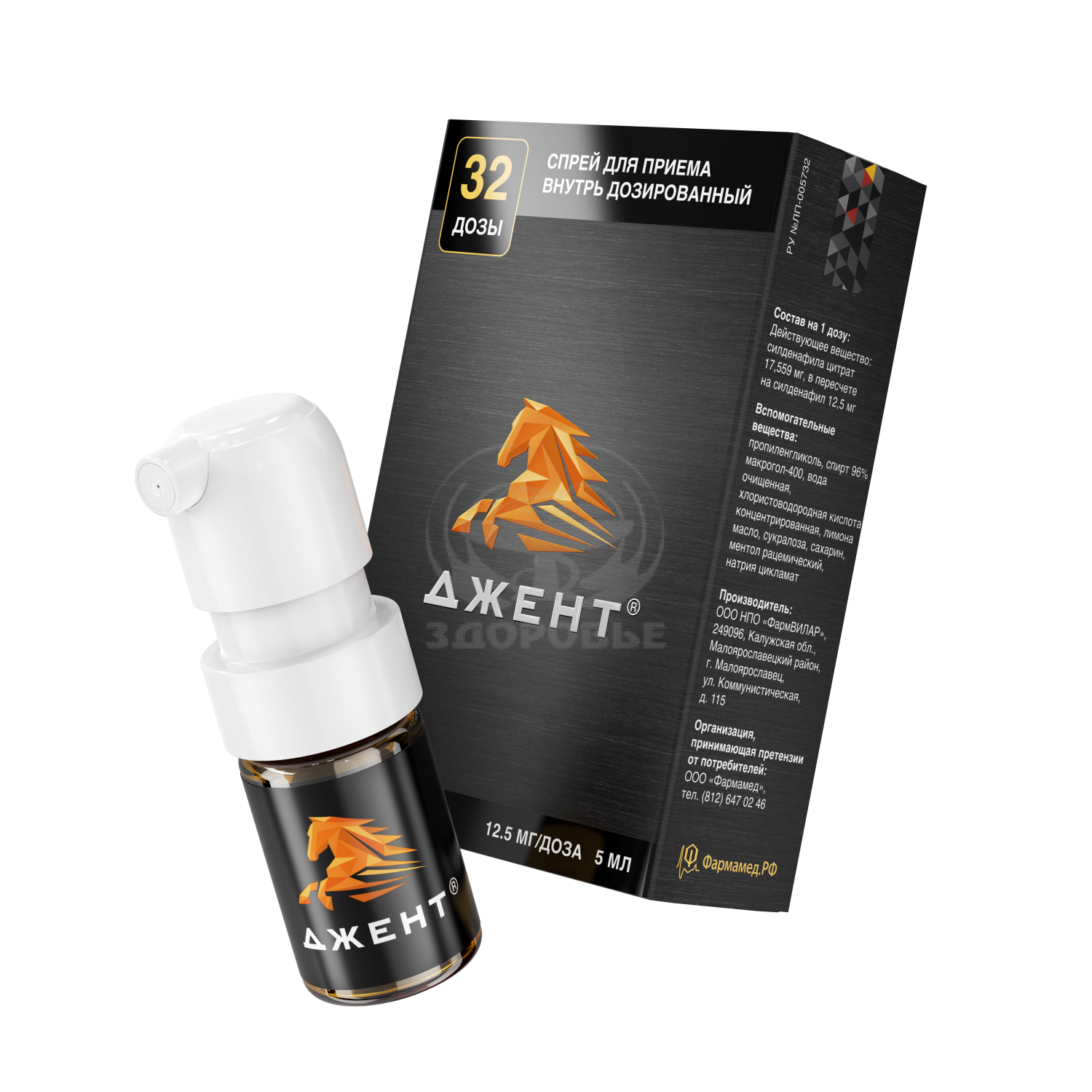 Состав на 1 дозуДействующее вещество: силденафила цитрат 17,559 мг (в пересчете на силденафил 12,5 мг).Вспомогательные вещества: пропиленгликоль 92,625 мг, спирт 96 % 23,400 мг, макрогол-400 (полиэтиленгликоль 400) 9,360 мг, вода очищенная 7,513 мг, хлористоводородная кислота концентрированная 2,783 мг, лимона масло 1,310 мг, сукралоза 1,200 мг, сахарин 0,187 мг, ментол рацемический 0,047 мг, натрия цикламат 0,016 мг.
