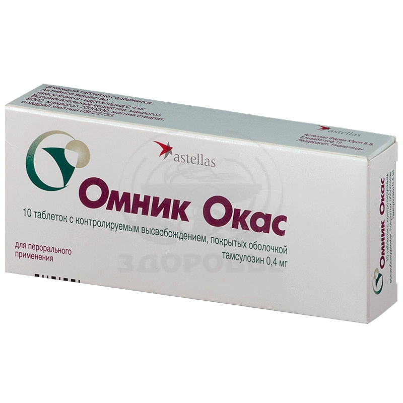 Тамсулозин является специфическим конкурентным блокатором постсинаптических α1-адренорецепторов, особенно α1А и α1D подтипов, отвечающих за расслабление гладкой мускулатуры предстательной железы, шейки мочевого пузыря и простатической части уретры. Омник Окас в дозировке 0,4 мг увеличивает максимальную скорость мочеиспускания, а также снижает тонус гладкой мускулатуры предстательной железы/и уретры, улучшая отток мочи и таким образом уменьшая выраженность симптомов опорожнения. Омник Окас также уменьшает выраженность симптомов наполнения, в развитии которых важную роль играет гиперактивность детрузора.