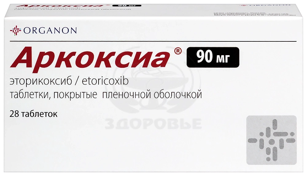 НПВС. Селективный ингибитор ЦОГ-2, в терапевтических концентрациях блокирует образование простагландинов и оказывает противовоспалительное, анальгезирующее и жаропонижающее действие. Селективное угнетение ЦОГ-2 сопровождается уменьшением выраженности клинических симптомов, связанных с воспалительным процессом, при этом отсутствует влияние на функцию тромбоцитов и слизистую оболочку ЖКТ.Эторикоксиб обладает дозозависимым эффектом ингибирования ЦОГ-2, не оказывая влияние на ЦОГ-1 при применении в суточной дозе до 150 мг. Аркоксиа не оказывает влияния на выработку простагландинов в слизистой оболочке желудка и на время кровотечения. В проведенных исследованиях не наблюдалось снижения уровня арахидоновой кислоты и агрегации тромбоцитов, вызываемой коллагеном.