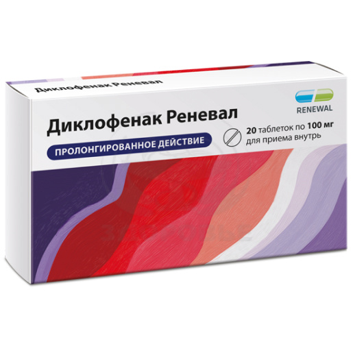 НПВП.Препарат Диклофенак Реневал содержит диклофенак натрия, вещество нестероидной структуры, оказывающее выраженное противовоспалительное, анальгезирующее и жаропонижающее действие.Основным механизмом действия диклофенака, установленным в исследованиях, считается торможение биосинтеза простагландинов. Простагландины играют важную роль в генезе воспаления, боли и лихорадки.In vitro диклофенак натрия в концентрациях, эквивалентных тем, которые достигаются при применении у человека, не подавляет биосинтез протеогликанов хрящевой ткани.При ревматических заболеваниях противовоспалительные и анальгезирующие свойства препарата обеспечивают клинический эффект, характеризующийся значительным уменьшением выраженности таких проявлений, как боль в покое и при движении, утренняя скованность и припухлость суставов, а также улучшением функционального состояния.При посттравматических и послеоперационных воспалительных явлениях диклофенак быстро купирует боль (как в покое, так и при движении), уменьшает воспалительный отек и отек послеоперационной раны.При применении препарата отмечен выраженный анальгезирующий эффект при умеренной и сильной боли неревматического происхождения. Также установлено, что диклофенак способен уменьшать болевые ощущения и снижать кровопотерю при первичной дисменорее.