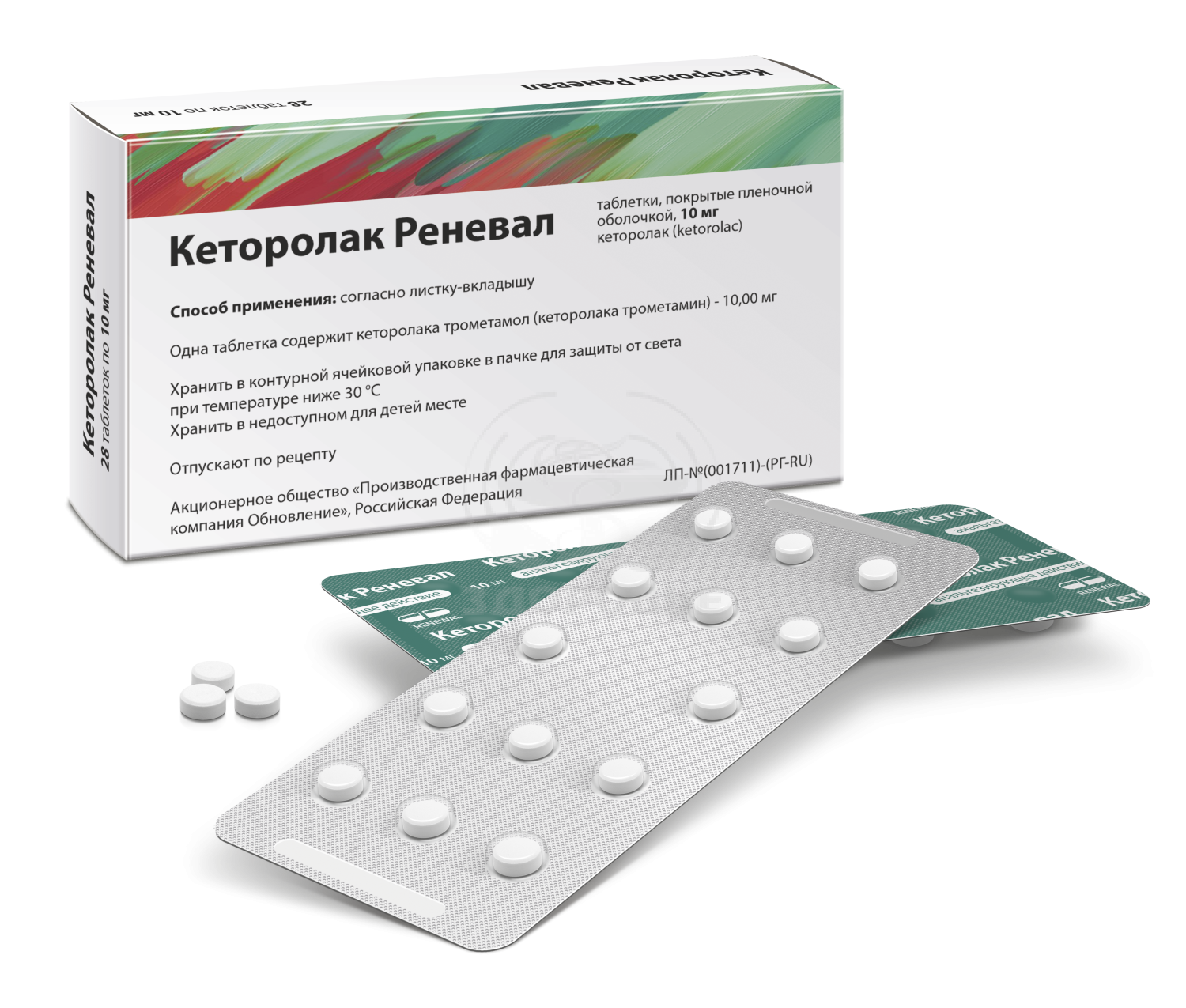 - Действующее вещество: Кеторолак (Кеторолака трометамин) - 10,00 мг;