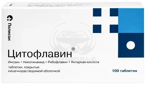 Цитофлавин обладает высокой биодоступностью. Янтарная кислота при приеме внутрь абсорбируется из ЖКТ, поступает в кровь и ткани, участвуя в реакциях энергетического обмена, и полностью распадается до конечных продуктов обмена (двуокись углерода и воду) через 30 мин. Инозин хорошо абсорбируется из ЖКТ. Tmax в крови составляет 5 ч, среднее время удержания в крови - 5.5 ч, Vd в равновесном состоянии - около 20 л. Инозин метаболизируется в печени с образованием инозинмонофосфата с последующим его окислением до мочевой кислоты. В незначительном количестве выводится почками. Никотинамид быстро распределяется во всех тканях (Vd в равновесном состоянии - около 500 л). Tmax в крови составляет 2 ч, среднее время удержания в крови - 4.5 ч. Метаболизируется в печени с образованием N-метилникотинамида. Выводится почками. Никотинамид проникает через плацентарный барьер. Проникает в грудное молоко. Рибофлавин быстро абсорбируется из ЖКТ, распределяется неравномерно (наибольшее количество в миокарде, печени, почках), трансформируется во флавинаденинмононуклеотид (ФМН) и ФАД в митохондриях. Проникает через плацентарный барьер. Выделяется с грудным молоком. Выводится почками, преимущественно в виде метаболитов.