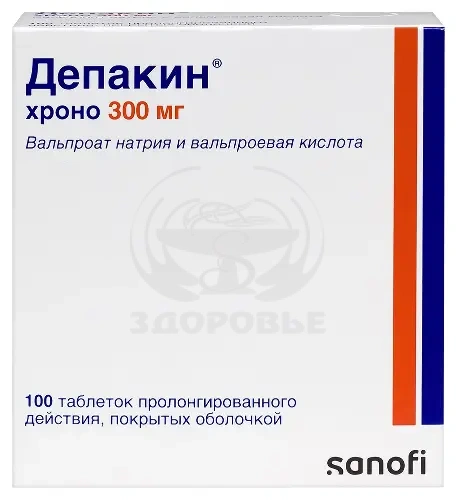 ВсасываниеБиодоступность вальпроата натрия и вальпроевой кислоты при приеме внутрь близка к 100%.При приеме таблеток Депакин хроно 500 мг в дозе 1000 мг/сут Cmin в плазме составляет 44.7±9.8 мкг/мл, а Cmax в плазме составляет 81.6±15.8 мкг/мл. Tmax в плазме составляет 6.58±2.23 ч. Css в плазме достигается в течение 3-4 дней регулярного приема препарата.Средний терапевтический диапазон сывороточных концентраций вальпроевой кислоты составляет 50-100 мг/л. При обоснованной необходимости достижения более высокой концентрации вальпроевой кислоты в плазме крови следует тщательно взвешивать соотношение ожидаемой пользы и риска возникновения побочных эффектов, особенно дозозависимых, т.к. при концентрации вальпроевой кислоты более 100 мг/л ожидается увеличение побочных эффектов вплоть до развития интоксикации. При плазменной концентрации более 150 мг/л требуется снижение дозы препарата.По сравнению с лекарственной формой, покрытой кишечно-растворимой оболочкой, препарат в форме таблетки с замедленным высвобождением в эквивалентных дозах характеризуется отсутствием латентного времени абсорбции, пролонгированной абсорбцией, идентичной биодоступностью, меньшим значением Cmax (снижение Cmax примерно на 25%), но с более стабильной фазой плато от 4 до 14 ч после приема, более линейной корреляцией между дозой и концентрацией препарата в плазме.РаспределениеСвязывание с белками плазмы (преимущественно с альбумином) высокое (90-95%), дозозависимое и насыщаемое.Vd зависит от возраста и обычно составляет 0.13-0.23 л/кг массы тела или у людей молодого возраста 0.13-0.19 л/кг массы тела.Вальпроевая кислота проникает в цереброспинальную жидкость и в головной мозг. Концентрация вальпроевой кислоты в ликворе составляет 10% от соответствующей концентрации в плазме.Вальпроевая кислота проникает в грудное молоко у кормящих матерей. В равновесном состоянии концентрация вальпроевой кислоты в грудном молоке составляет 1-10% от ее концентрации в плазме.МетаболизмМетаболизируется путем бета-, омега- и омега-1-окисления и конъюгации с глюкуроновой кислотой. Выделено более 20 метаболитов, метаболиты после омега-окисления обладают гепатотоксическим действием.Вальпроевая кислота не обладает индуцирующим эффектом на изоферменты системы цитохрома Р450: в отличие от большинства других противоэпилептических препаратов, вальпроевая кислота не влияет на степень, как собственного метаболизма, так и на степень метаболизм других лекарственных средств, таких как эстрогены, прогестагены и непрямые антикоагулянты.ВыведениеВыводится в основном почками после бета-окисления и конъюгации с глюкуроновой кислотой. Менее 5% вальпроевой кислоты выводится почками в неизмененном виде.T1/2 составляет 15-17 ч. Плазменный клиренс вальпроевой кислоты у пациентов с эпилепсией составляет 12.7 мл/мин.Фармакокинетика в особых клинических случаяхУ пациентов пожилого возраста, пациентов с почечной и печеночной недостаточностью связывание с белками плазмы крови уменьшается. При тяжелой почечной недостаточности концентрация свободной (терапевтически активной) фракции вальпроевой кислоты может повышаться до 8.5-20%.При гипопротеинемии общая концентрации вальпроевой кислоты (свободная + связанная с белками плазмы крови фракции) может не изменяться, но может и уменьшаться из-за увеличения метаболизма свободной (не свя