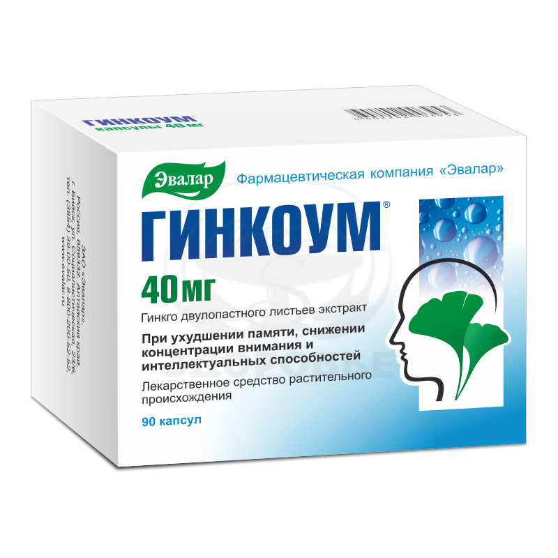 На одну капсулу:действующий компонент: гинкго двулопастного экстракт сухой, стандартизованный с содержанием флавоноловых гликозидов 22,0-27,0 % и терпеновых лактонов 5,0-12,0 % - 0,040 гвспомогательные компоненты: целлюлоза микрокристаллическая - 0,109 г, кальция стеарат - 0,001 г, капсулы твердые желатиновые (компоненты корпуса капсулы: железа оксид черный Е 172, железа оксид красный Е 172, титана диоксид Е 171, железа оксид желтый Е 172, желатин, компоненты крышки капсулы: железа оксид черный Е 172, железа оксид красный Е 172, титана диоксид Е 171, железа оксид желтый Е 172, желатин).