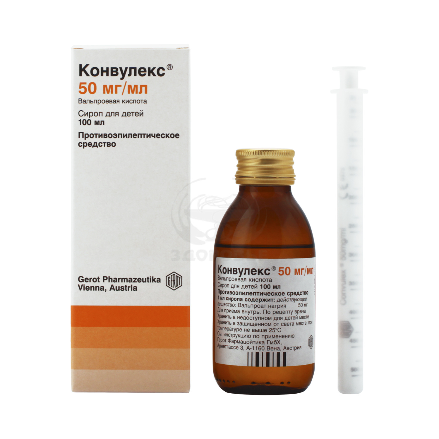 Вальпроевая кислота практически полностью всасывается в желудочно-кишечном тракте, биодоступность при приеме внутрь составляет 100%. Прием пищи не снижает скорость абсорбции. Максимальная концентрация в плазме отмечается через 1-3 ч после приема сиропа. Равновесная концентрация достигается на 2-4 день лечения, в зависимости от интервалов между приемами. Терапевтическая концентрация вальпроевой кислоты, в плазме крови колеблется в пределах 50-150 мг/л. Связь с белками плазмы – 90-95% при концентрации в плазме крови до 50 мг/л и на 80-85% при концентрации 50-100 мг/л.