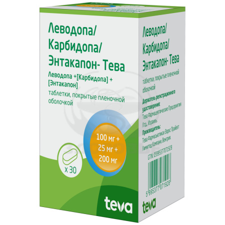 Леводопа/Карбидопа/Энтакапон -Тева таблетки покрытые оболочкой 100мг+25мг+200мг 30 |